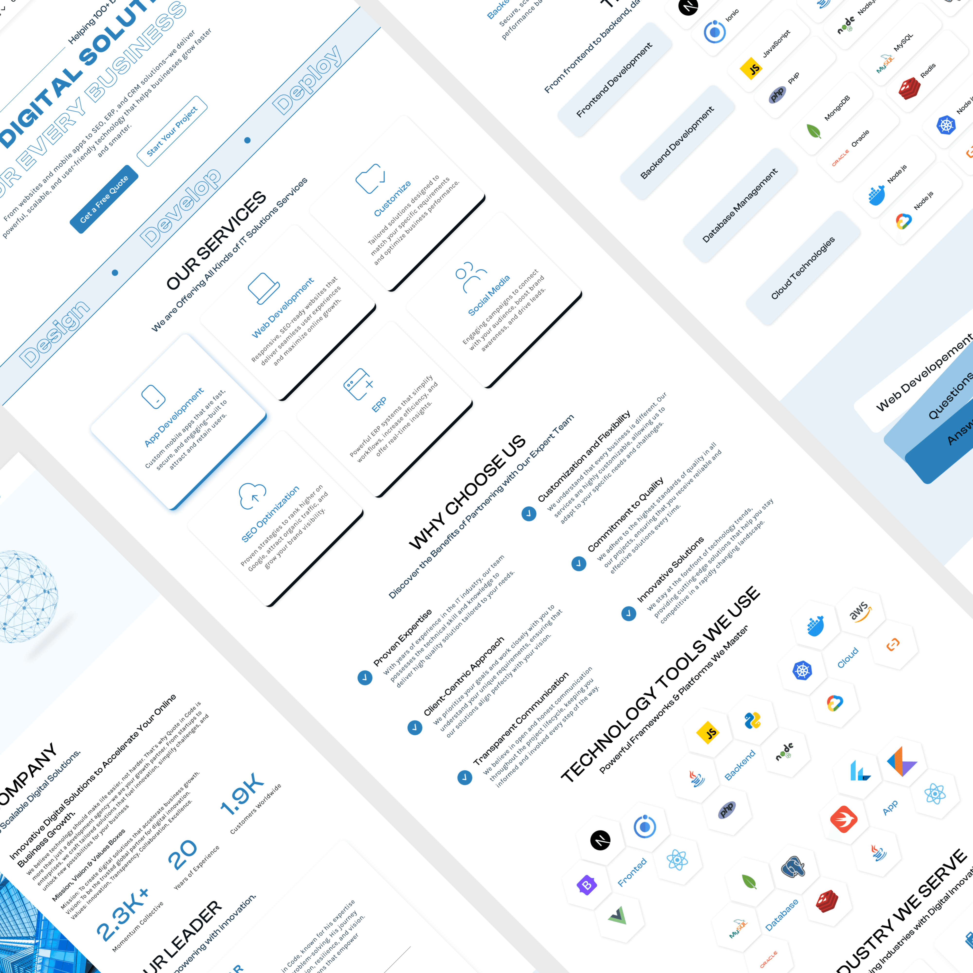 Created a modern website UI for an IT solutions company with a conversion-focused structure, including service highlights, credibility sections, technology tools, and industries served. Designed for clarity, scalability, and a strong professional brand presence.
